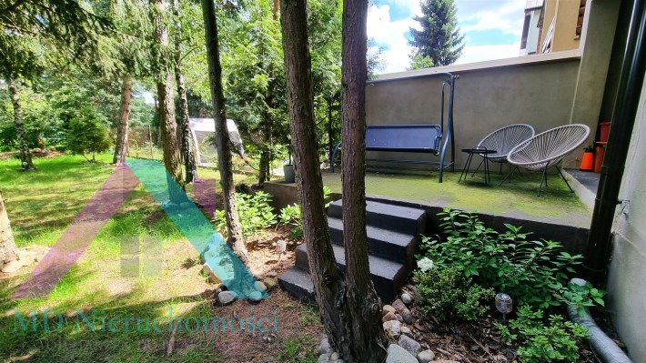 - ZAGOSPODAROWANIE DZIAŁKI/NASADZENIA: ogród - trawa i iglaki, częściowo wysypane kamyki, ogród oddzielony od sąsiadów wysokimi iglakami