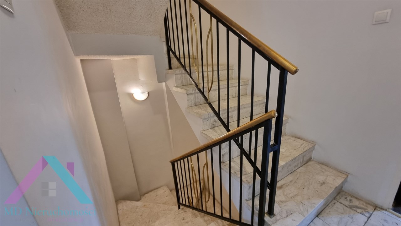 ELEGANCKA KLATKA SCHODOWA : schody betonowe, okładzina podłoga marmur, barierki metalowe