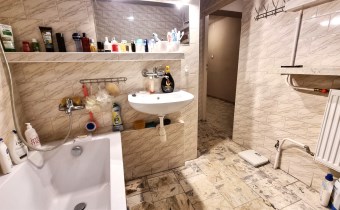 - ŁAZIENKA/PRALNIA - z wydzielonym WC 8,1 m, wanna, umywalka, podłoga marmur łupany, ściany glazura