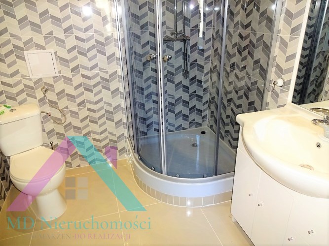 - ŁAZIENKA: umywalka, kabina prysznicowa, pralka, lustro, sedes