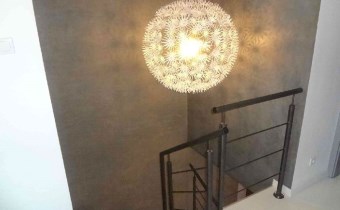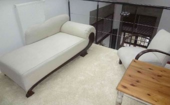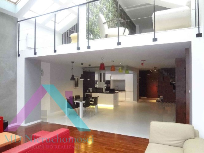 - STANDARD WYKOŃCZEŃ: na podłodze w salonie parkiet, w holu wejściowym gres szkliwiony, w sypialniach na antresoli wykładziny, terakota w łazience na górze, w łazience na dołu oryginalne wykończenie z blachy aluminiowej, na ścianach gładzie gipsowe, okna dachowe drewniane, całość bardzo gustownie wykończona.