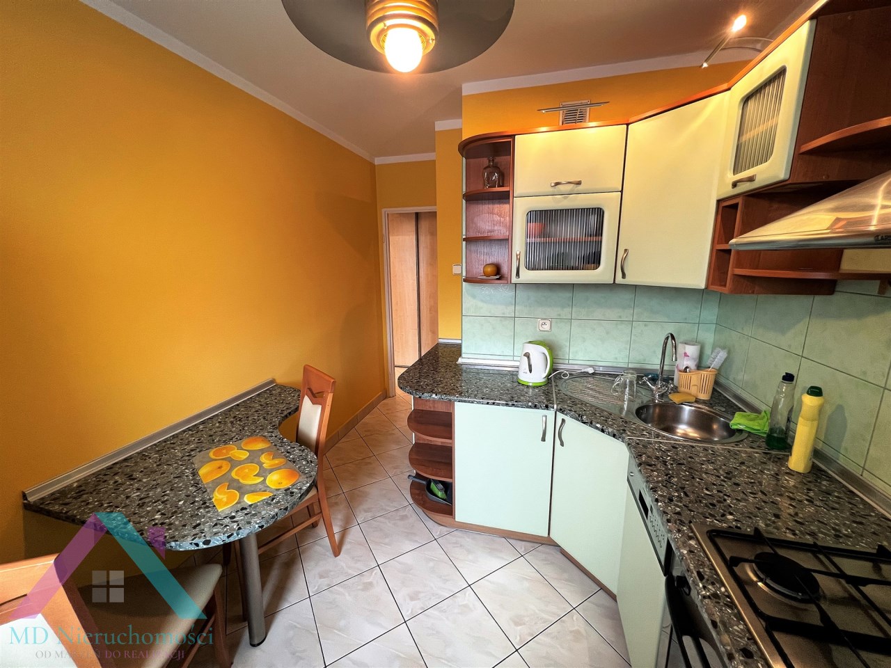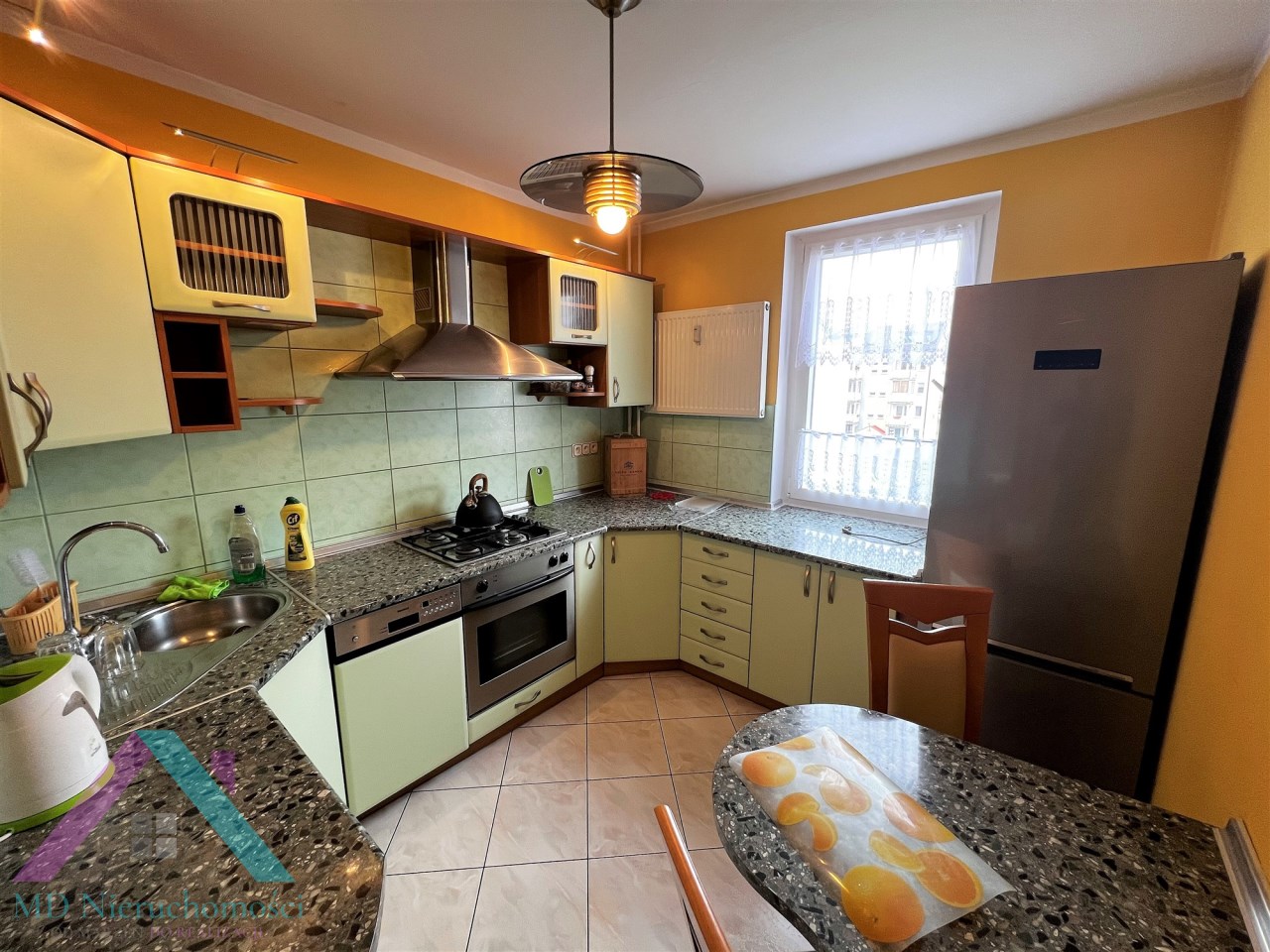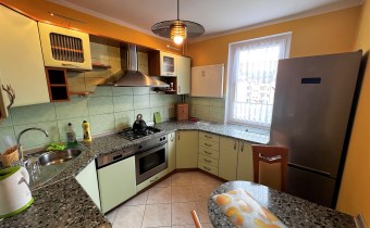 - KUCHNIA: meble w zabudowie, nowa lodówka z zamrażarką, zmywarka, płyta gazowa, piekarnik elektryczny, pochłaniacz zapachów, stolik w zabudowie, 2 krzesła,
