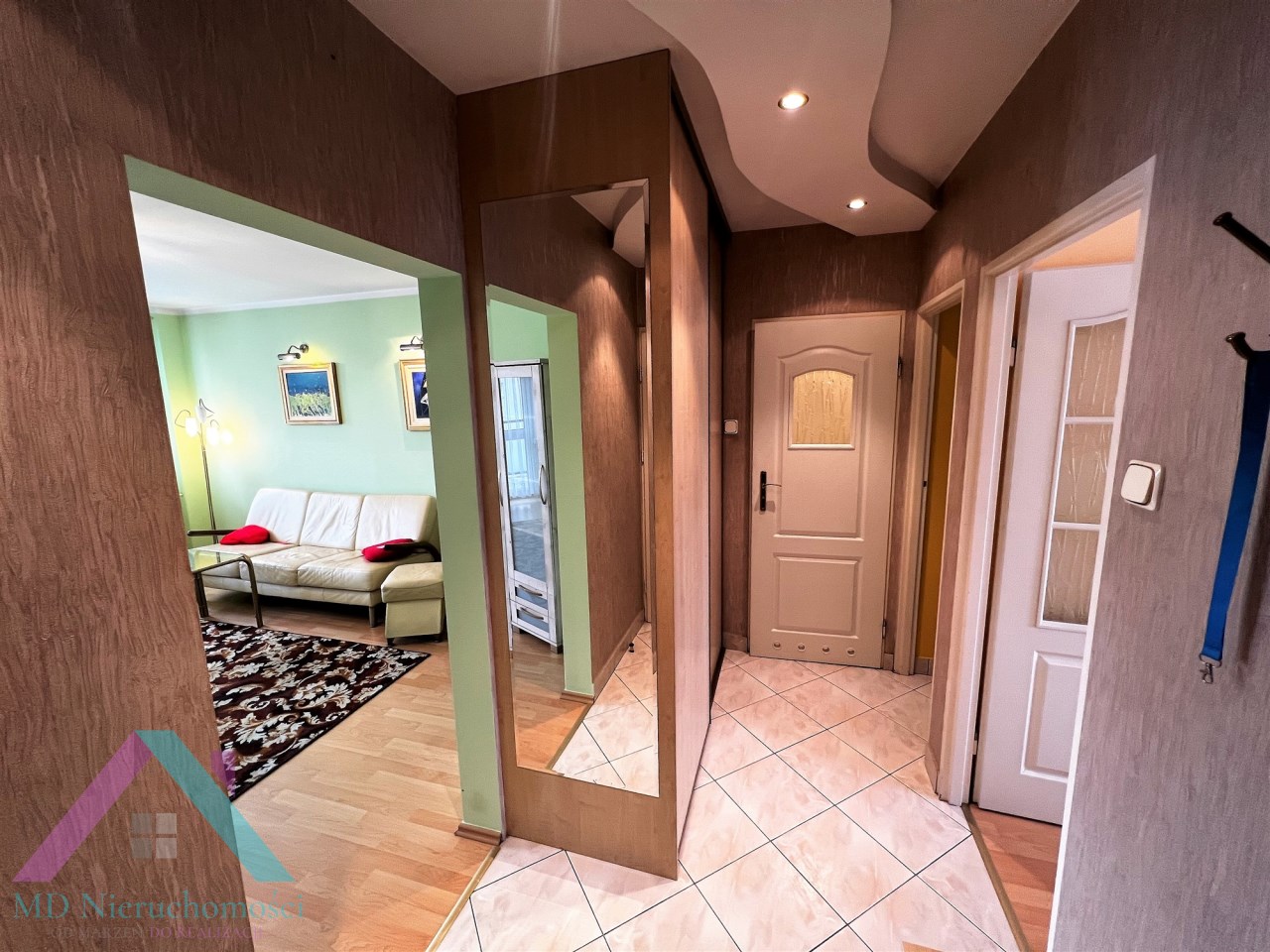 - PRZEDPOKÓJ: terakota, gładzie, szafa typu garderoba, szafka na obuwie,
